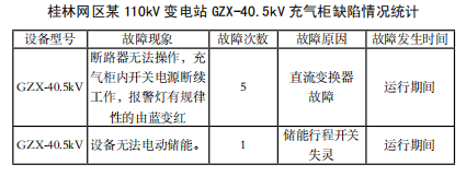 桂林网区某110kV变电站现有的高压充气柜缺陷频发,根据运行值班人员提供的数据,该型号充气柜仅2012~2013期间发生缺陷次数及实际缺陷部位(表所示)。