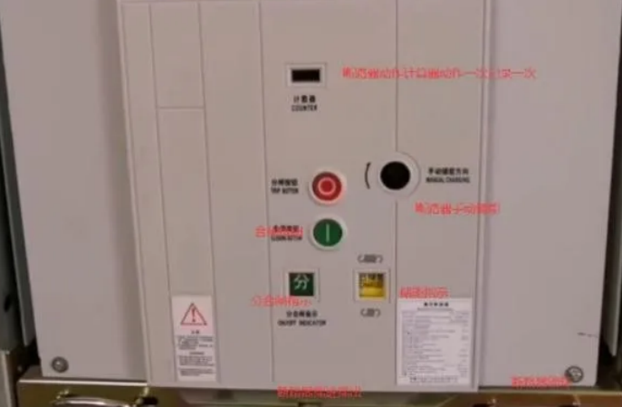 1,断路器在分闸已储能状态,储能指示显示已储能,储能弹簧已拉开,面板得合闸按钮在上图中的下孔中,如果断路器未储能是合不了闸的