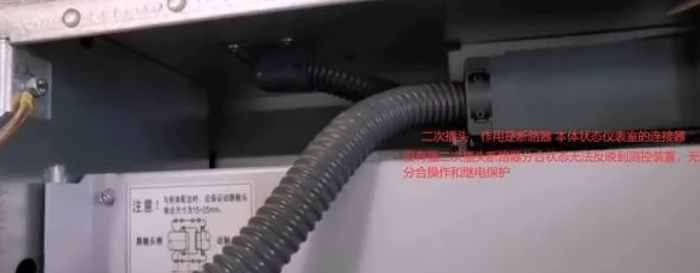 7,上图为断路器二次控制航空插头,它的作用是断路器本体状态与继电器,仪表室的连接器件,连接枢纽。航空插头如果不插上的话断路器分合闸状态是无法反映到测控装置的,测控装置指示灯就不亮,也无法使用操控面板和集控室的DCS系统对断路器进行分合闸操作。