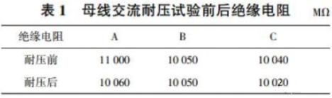 从耐压实验进程和表1绝缘电阻数据来看,该35kV 高压充气柜母线耐压实验合格。
