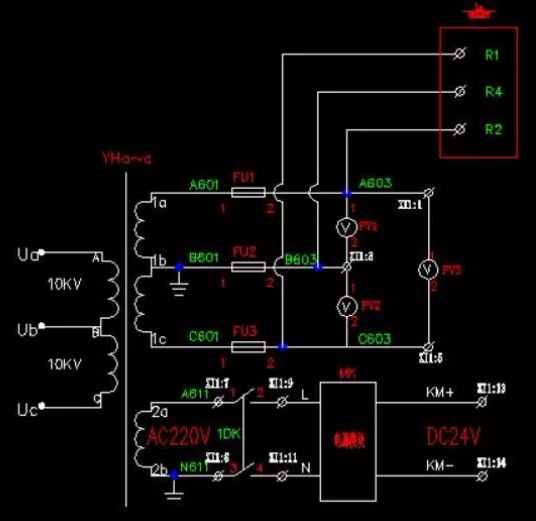 (1)用万用表检测两相二次熔芯上端,假如显现100V,然后再检测下端显现无100V,那么是二次熔芯烧坏,替换二次熔芯即可。用万用表检测二次熔芯上端发现无100V电压可能是一次熔芯烧坏,停电后对一次熔芯检测通断,看是否为一次熔芯烧坏