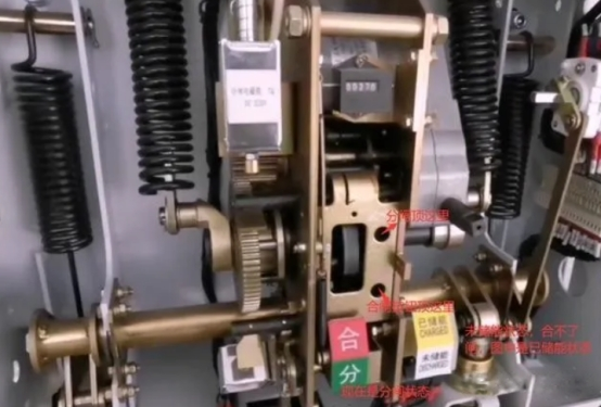 2,按下合闸按钮后,合闸指示牌显现在合闸方位。储能显现在未储能状况,未储能是能够分闸的,分闸的开释绷簧是摆开的,按下分闸按钮,分合闸指示牌显现已分闸,这是在未储能状况按合闸按钮是合不了闸的,合闸必须要储能,