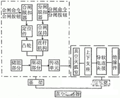 ⑤正确履行操作程序和宣布切换信号(包含指示信号、控制信号和连锁信号)在进行高压户内外真空断路器结构剖析时,不论何种结构方法的断路器均可将其操作系统分为控制、动力和传动三部分