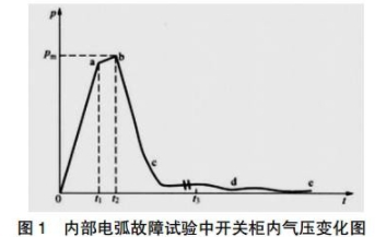 内部故障发生的损坏力与电弧发生的距离容积,电弧电压,继续的时刻,短路电流巨细有关。在电弧发生后,柜体内的压力进程如图1所示,压力进程能够分为四个物理阶段风图1。