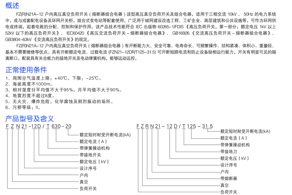 户内高压真空负荷开关